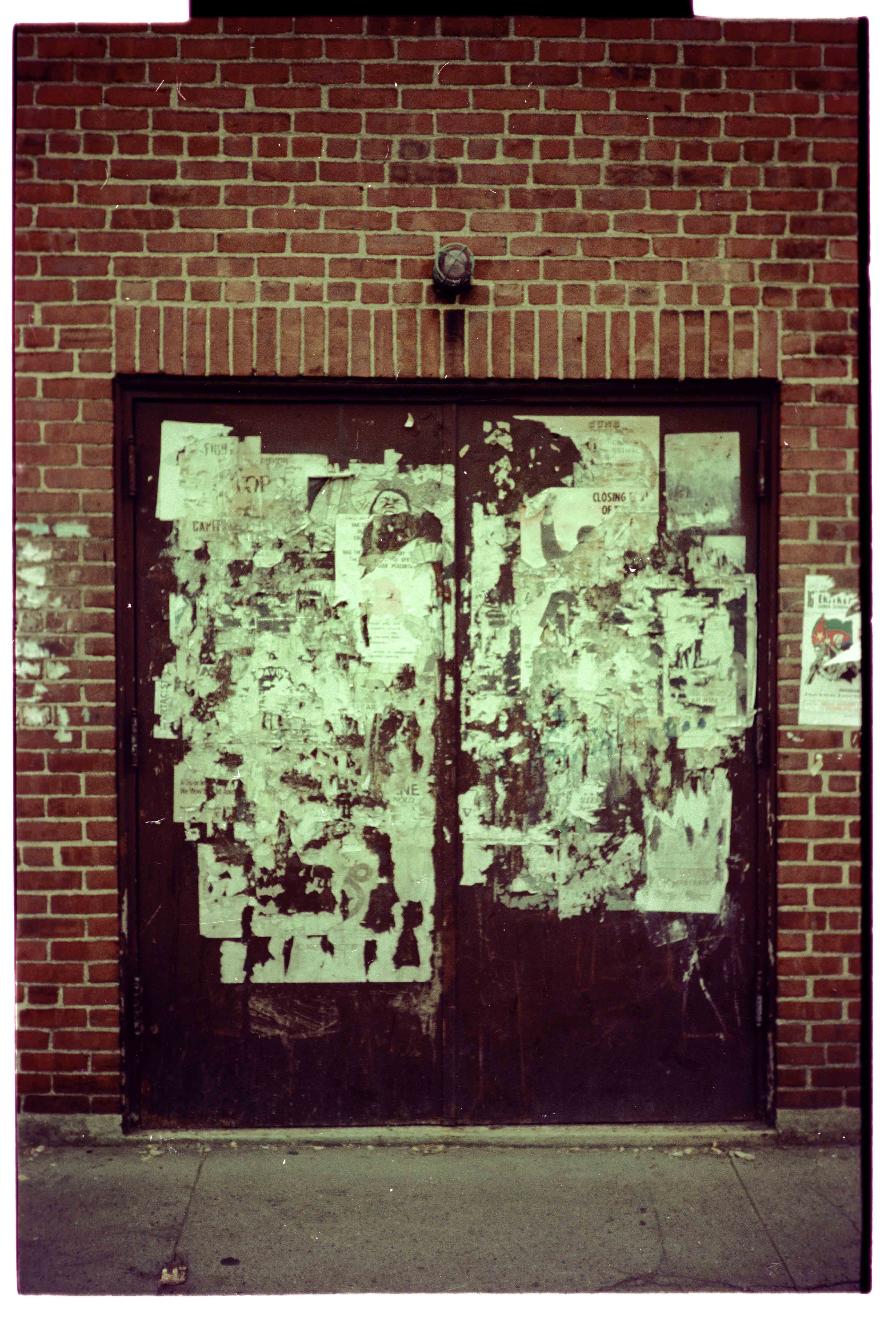 Political posters also played a role, particularly in my décollageseries (created by the tearing away of original images) taken on medium-format film for texture and detail. The posters reflect political agitation of radical factions, marginal Marxist groups, in other words the ferment of the post-Vietnam period. For the most part they were stapled to the rusty iron fire doors of the venerable Harvard Square Theater, which, I recently learned, has been empty for many years. In the harsh New England climate, these posters would weather and peal—or be torn—thus creating an urban palimpsest.