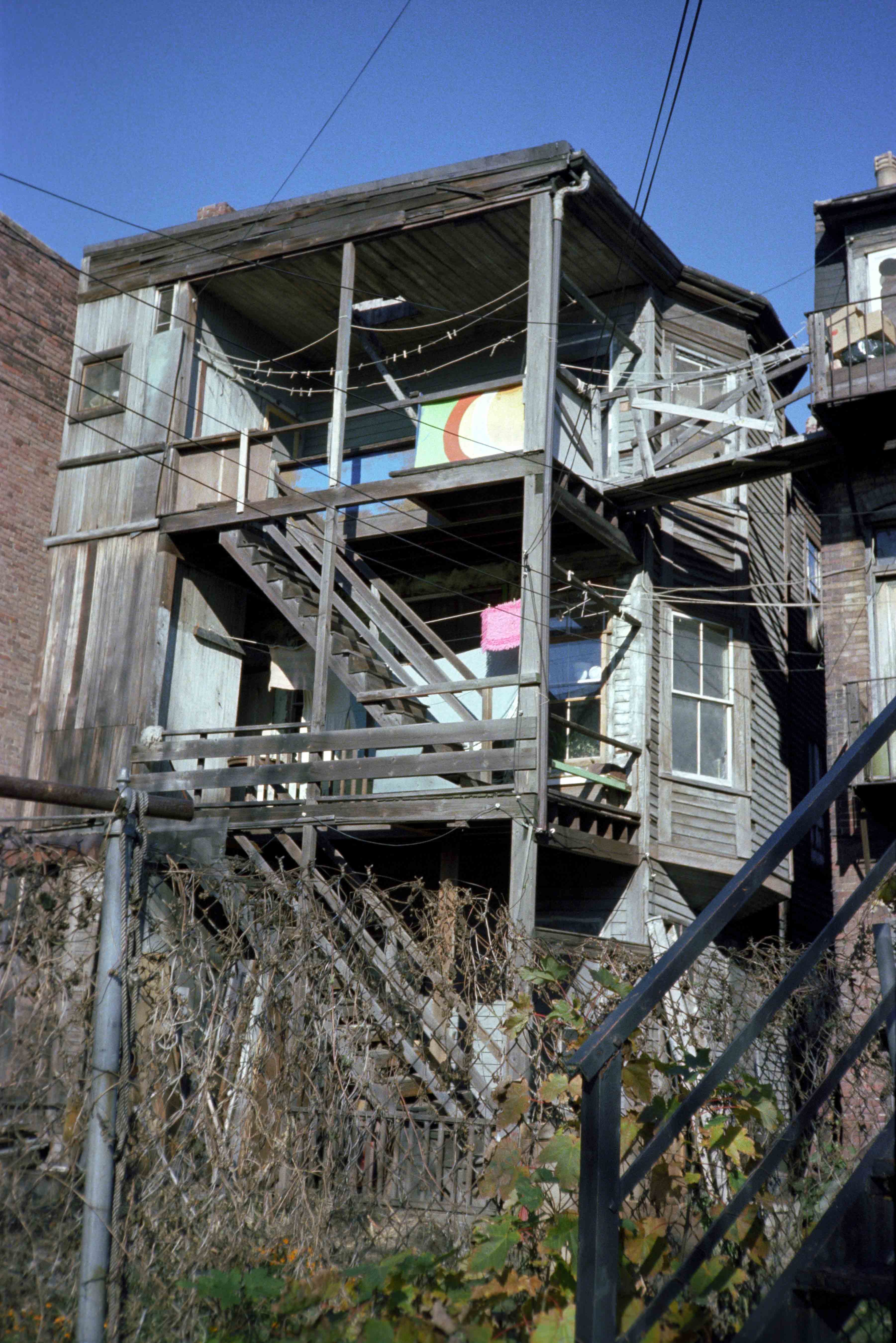 The Roxbury/Cambridge section is the leading wedge of the projected work. In the Roxbury series, ruin or abandonment are the source for images of robust color, above all in the street art of Dana Chandler. At the same time there is the architectural statement of First Church in Roxbury, whose current form in the neoclassical Federalist Style dates to 1804. Still in use as a Unitarian Universalist church, it had been transformed when I photographed it into something of a community center. The peaceful harmony of its austerely beautiful interior summons the aura of the spiritual, even as the looming skyscrapers of downtown Boston, bastions of capitalism, are visible through the upper windows. First Church in Roxbury is one of the few structures in Lost America still standing to this day.
