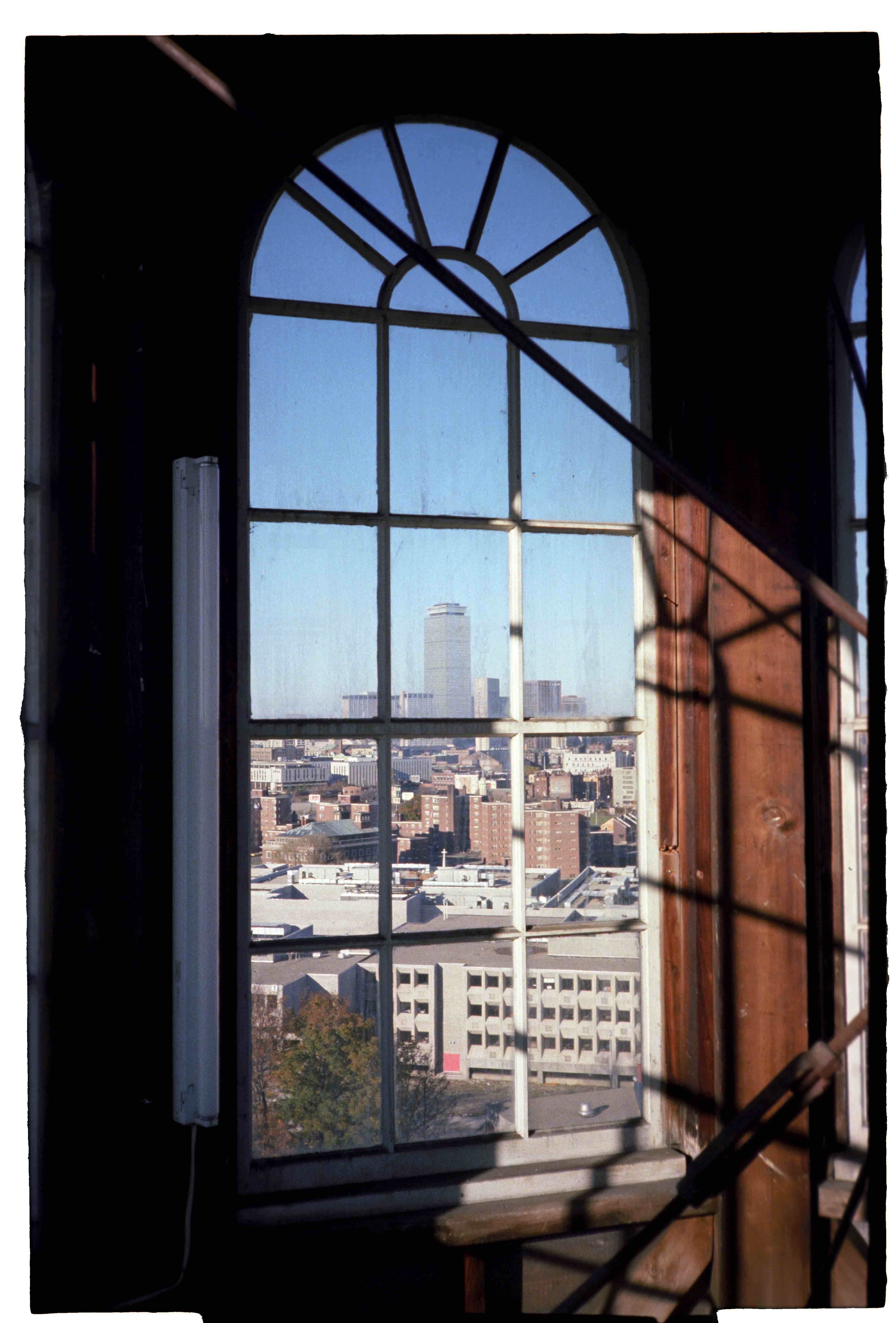 The Roxbury/Cambridge section is the leading wedge of the projected work. In the Roxbury series, ruin or abandonment are the source for images of robust color, above all in the street art of Dana Chandler. At the same time there is the architectural statement of First Church in Roxbury, whose current form in the neoclassical Federalist Style dates to 1804. Still in use as a Unitarian Universalist church, it had been transformed when I photographed it into something of a community center. The peaceful harmony of its austerely beautiful interior summons the aura of the spiritual, even as the looming skyscrapers of downtown Boston, bastions of capitalism, are visible through the upper windows. First Church in Roxbury is one of the few structures in Lost America still standing to this day.