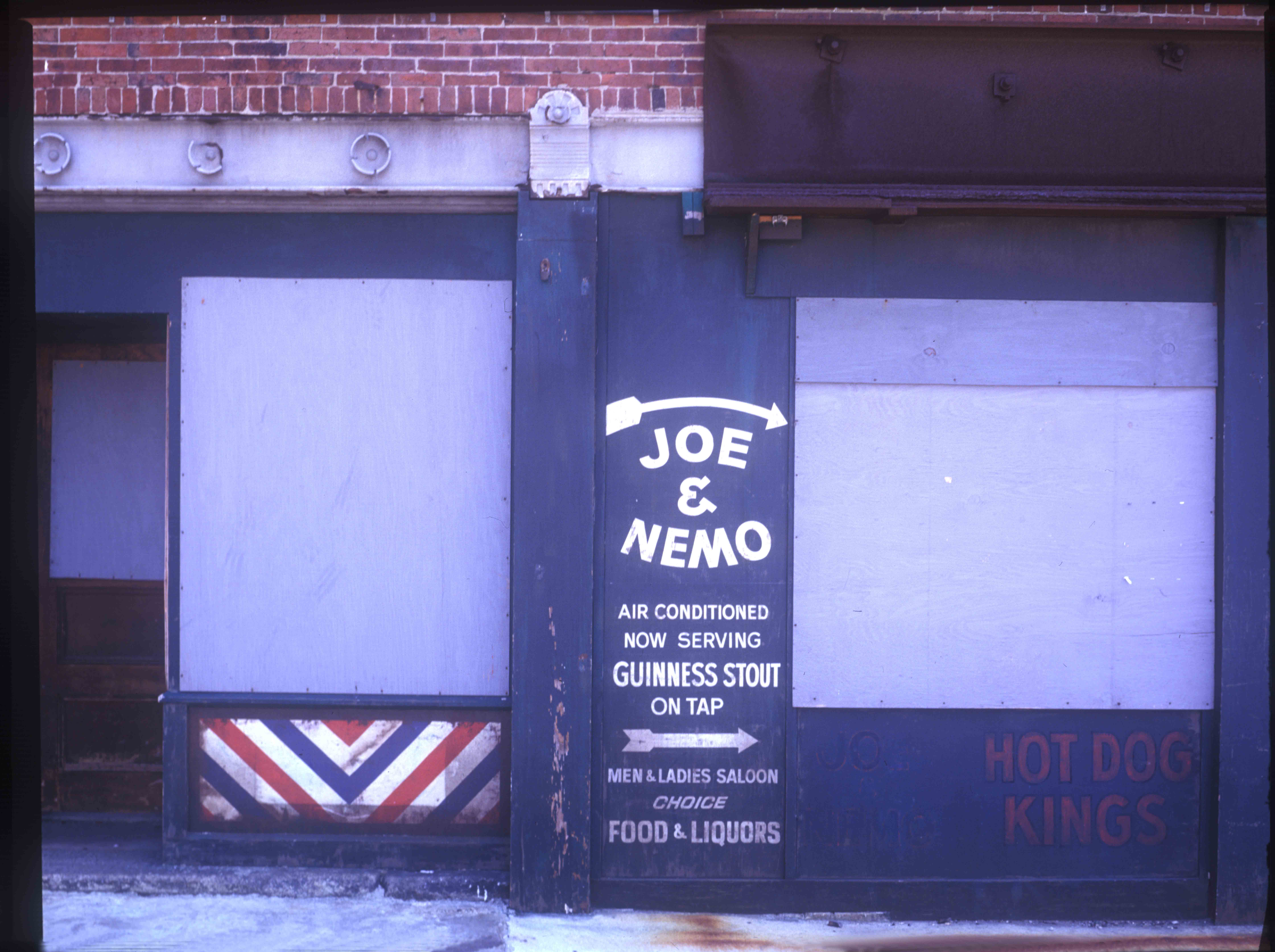 The Roxbury/Cambridge section is the leading wedge of the projected work. In the Roxbury series, ruin or abandonment are the source for images of robust color, above all in the street art of Dana Chandler. At the same time there is the architectural statement of First Church in Roxbury, whose current form in the neoclassical Federalist Style dates to 1804. Still in use as a Unitarian Universalist church, it had been transformed when I photographed it into something of a community center. The peaceful harmony of its austerely beautiful interior summons the aura of the spiritual, even as the looming skyscrapers of downtown Boston, bastions of capitalism, are visible through the upper windows. First Church in Roxbury is one of the few structures in Lost America still standing to this day.