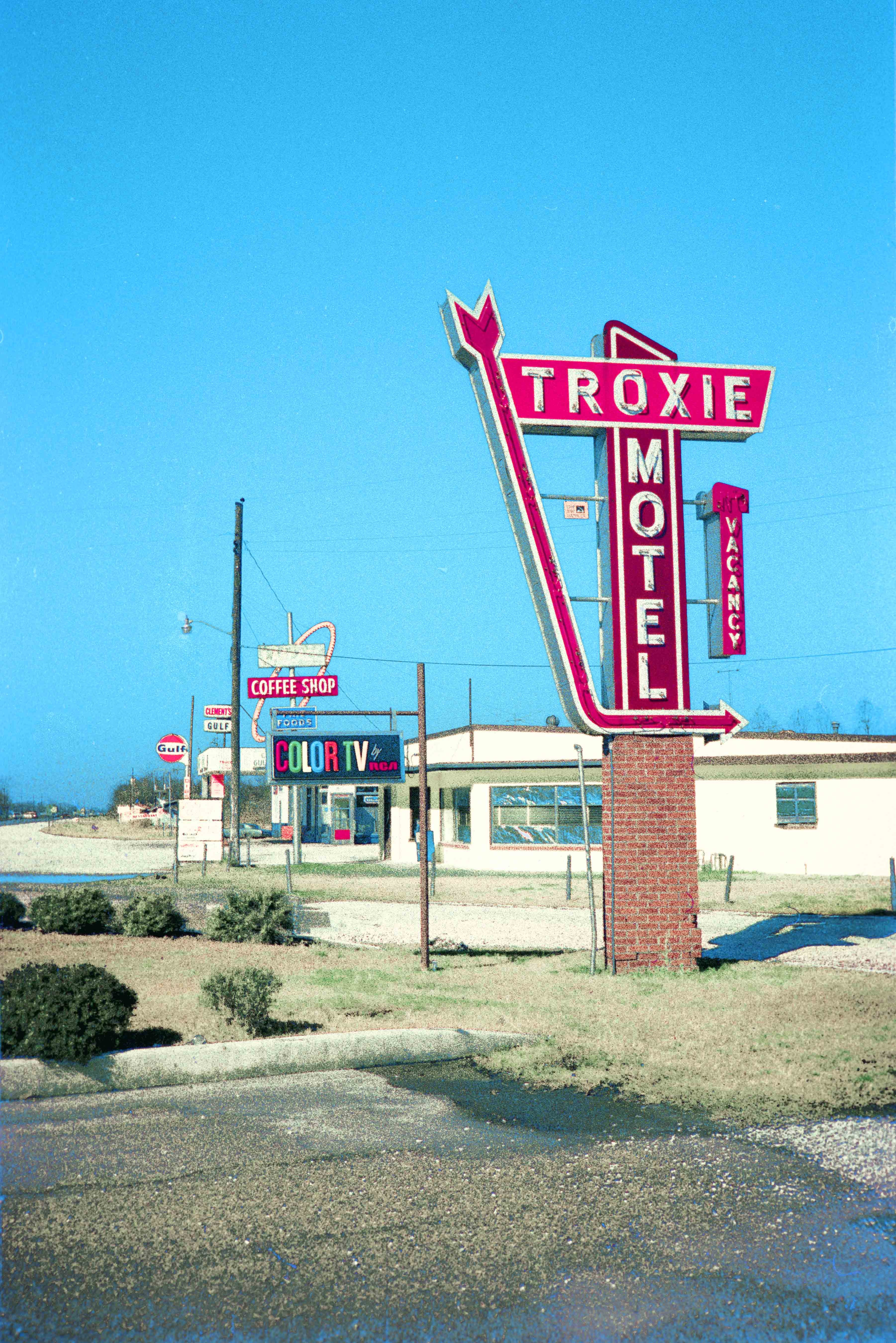 The book’s third part, “Southern Dreams,” opens the aesthetic properties of bitumen, asphalt. The photographs—from central North Carolina, Melbourne, Florida and the New Orleans area—are related to family journeys at a complicated time in my life, but the biographical element is suppressed in this presentation. New Orleans occupies a special place in this section, as it did in my life during the 1960s and 70s. More will be said about that in the accompanying essay. Otherwise, there was no specific purpose in taking these photographs, no assignment, no narrative. My presence with the camera was both incidental and determined by my quest for the “bestranged” visionary moment. A country road near my grandmother’s house in Chatham County, North Carolina provided such moments, as did Melbourne, Florida (where my sister lived), still relatively undeveloped and unhomogenized at that time, and capable of providing unexpected moments of connection with that state’s anti-culture. Manifestations of these moments include visual irony, the incongruity of human intrusion (a naïve advertising sign, for example) into a natural setting that dominates the image frame.